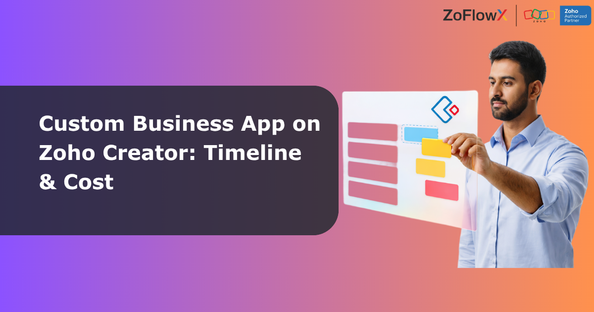 ZoFlowX can build a Custom Business App on Zoho Creator in 2-12 weeks. Get process, timeline, 2026 AI features and India pricing. Book a free call.