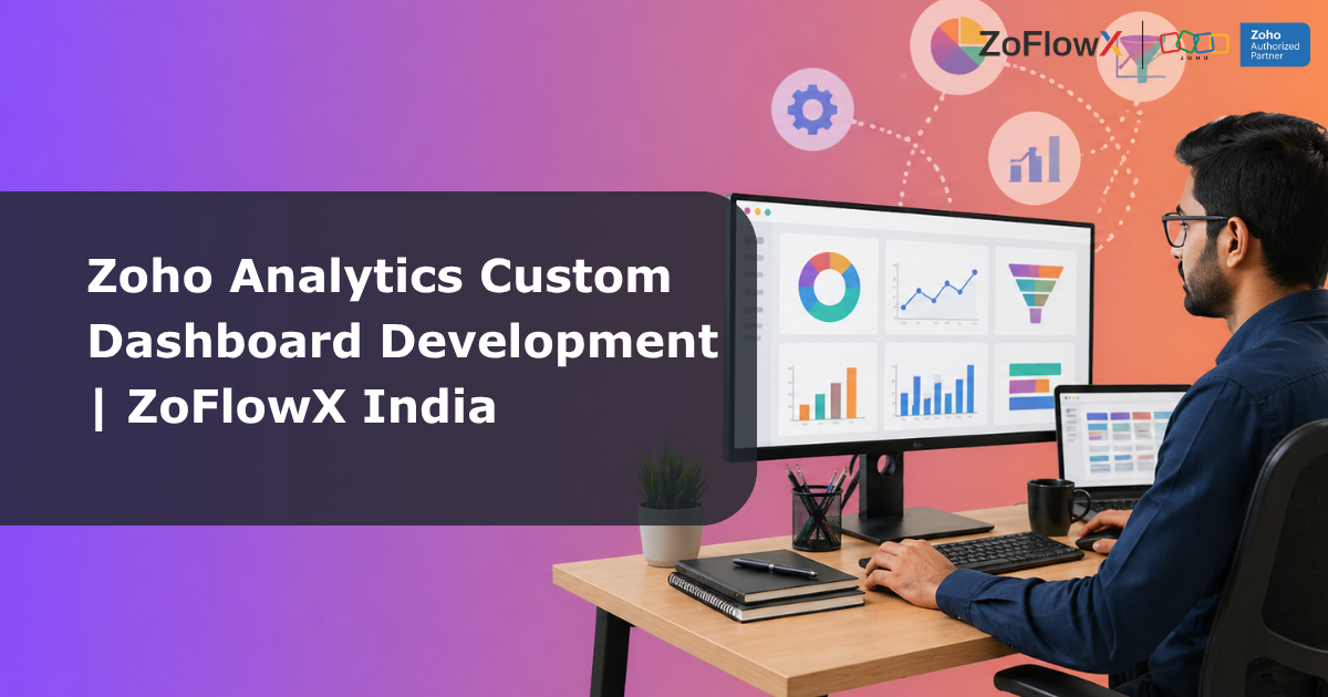This guide shows what zoho analytics custom dashboard development looks like when built for CEOs. Learn our step-by-step process, real department use cases, latest 2026 features, integration services, India pricing, and why founders choose ZoFlowX as their Zoho Analytics dashboard experts.